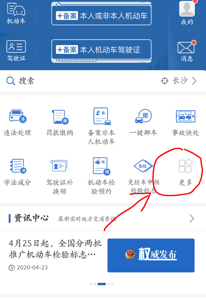 1.下载“交管12123”,并注册账号。进入软件首页后,点击图中的“更多”图标。