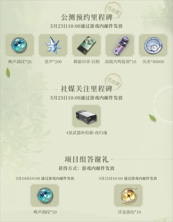 据官方透露,漂泊者们在游戏内可累计免费获取: