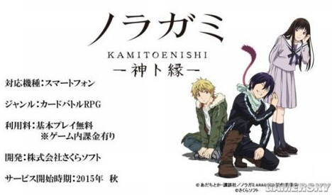 连载漫画《野良神》(流浪神差)有着相当不错的人气,制作方决定搬至手游。其实此消息已在SAKURA SOFT的8月8日举行的TV动画《野良神》(流浪神差)活动中就已宣布,手游名为《野良神 神与缘(ノラガミ~神ト縁(カミトエニシ)~)》,预计在2015年秋季开始上架。而游戏类型为卡牌战斗RPG,采用游戏免费、部分道具收费制。现官方已 开启事前登陆(iOS,Android,mobage平台),感兴趣的玩家不妨去看看。