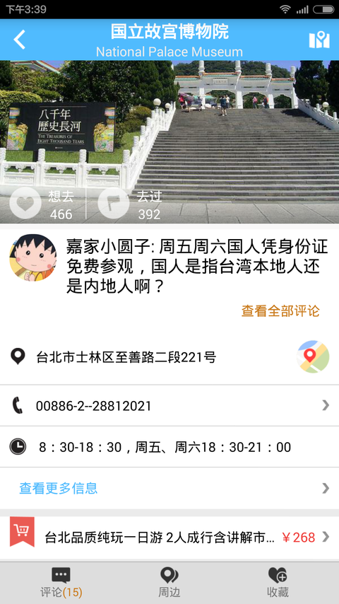 玩:台北名胜古迹颇多,循着淡水河,北边有大屯山系、七星山系而形成的阳明山公园,是大台北的后花园;故宫博物院是岛内外首屈一指的艺术宝库,详情查看景点环节