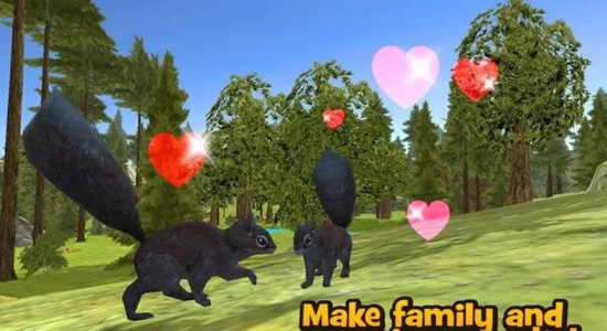 游戏里玩家将化身为一只可爱的松鼠,在广阔的大自然里自由自在地生活,但是大自然也是残酷的,玩家要想办法收集食物比躲避各种天敌,如果遇到同类松鼠,还可以进行求爱,从而交配出后代。