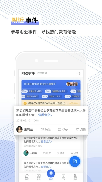 打开软件,直接点击进入附近页面,在页面查看各种事件信息