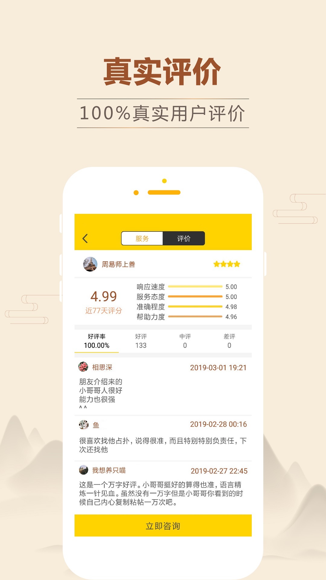 百分百真实评价,便捷的就可以查看到其他咨询者给予的评价信息;