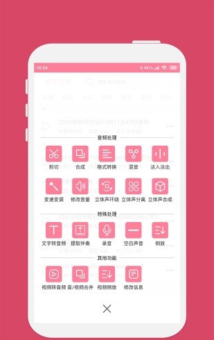 是一款简单的音频编辑工具,让用户可以对本地的音频文件进行编辑,您就能自由的对音频进行合并、裁剪、混音等操作了,帮助用户制作出更多个性、魔性的手机铃声;APP的音频编辑功能非常的多,包含了剪辑、拼接、转换、提取、合成等等,以后就可以直接在手机上进行音频编辑了,再也不需要到PC端使用音频剪辑工具。