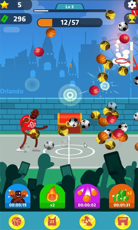 2、你都需要将你手中的球,很好的投入篮筐当中,这样才能顺利的完成挑战。