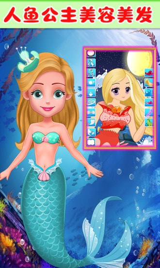1.触摸点击选择衣服、耳环、头饰等,可以改变人鱼公主的装扮