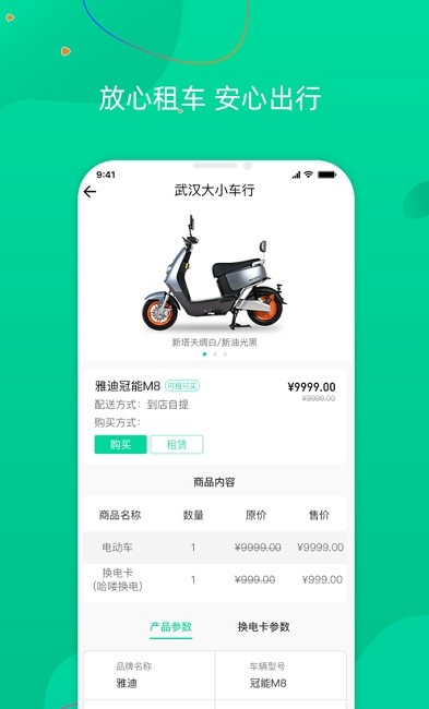 飞鹿出行可为用户提供专业的电动车、电池等商品的租赁与购买服务;用户打开APP后进入APP首页,在首页用户可以看到附近的商店,点击商店可为用户提供导航服务以及商店的介绍。用户点击商店可以查看到商店的商品,点击商品可查看商品的详细信息;用户点击购买或者租赁商品后会生成订单;支付成功后用户就可以绑定自己的商品了;并且查看租赁或购买的商品信息;用户租期结束后可为用户提供续租服务或者解绑归还商家服务。
