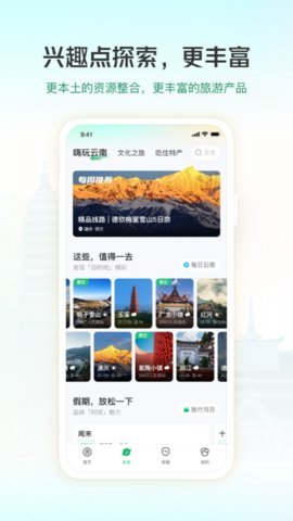 游云南旅游app是一款旅游的手机应用软件,专门为想去云南旅游的你设计。它拥有非常强大的软件功能,衣食住行吃喝玩乐,让你的旅行充满乐趣和精彩,云南官方版旅游简介云南是利用物联网、云计算、大数据、人工智能技术搭建的全域旅游数字化平台。为2265名游客提供“吃、住、行、购、娱”的智慧旅游服务,营造诚信消费的环境和快捷投诉的管理体系。