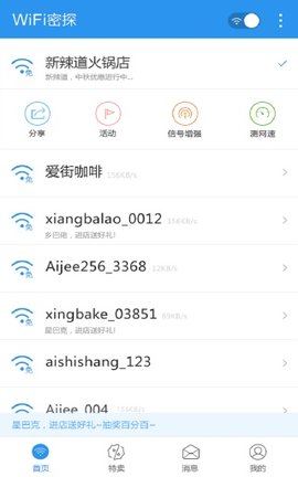 wifi密探官方版app免费是最好用的wifi管理工具,支持一键连接免费wifi热点,wifi测速,创建热点和wifi密码查看等功能,是您最好的手机上网伴侣。