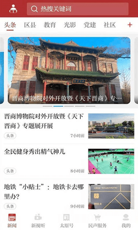 1、每天更新最新的太原新闻信息,并根据用户阅读历史推荐相关内容。