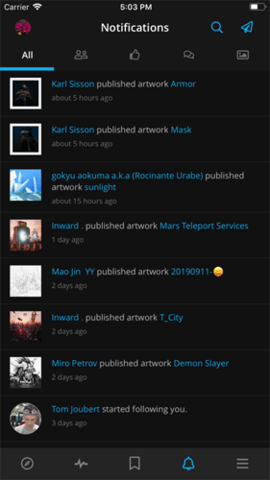 3、在这里,当你遇到你最喜欢的艺术作品时,只需单击一下,你就可以关注你最喜欢的艺术家。