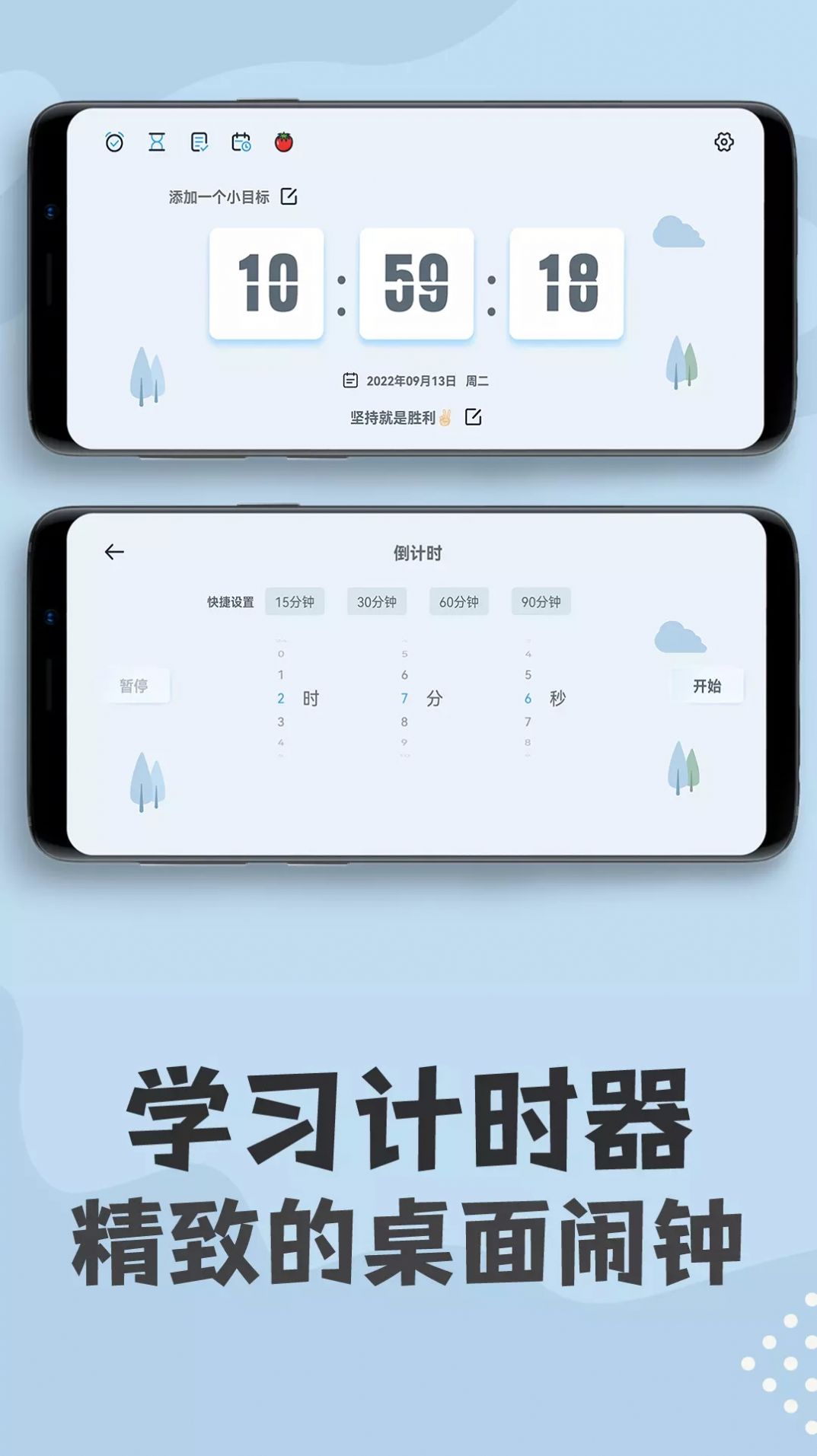 学习计时钟app是一款非常有用的计时工具。软件可以帮助学生提高学习效率。通过时间安排,孩子们可以合理利用学习时间,制定好学习计划,有效提高学习质量。是日常学习的好帮手。可以根据每次考试的长度进行设置。当时间到了,系统会给出一条消息提醒,可以让我们更好地控制我们的回答速度,警报铃声可以由我们自己定义,有很多材料,不断变化。