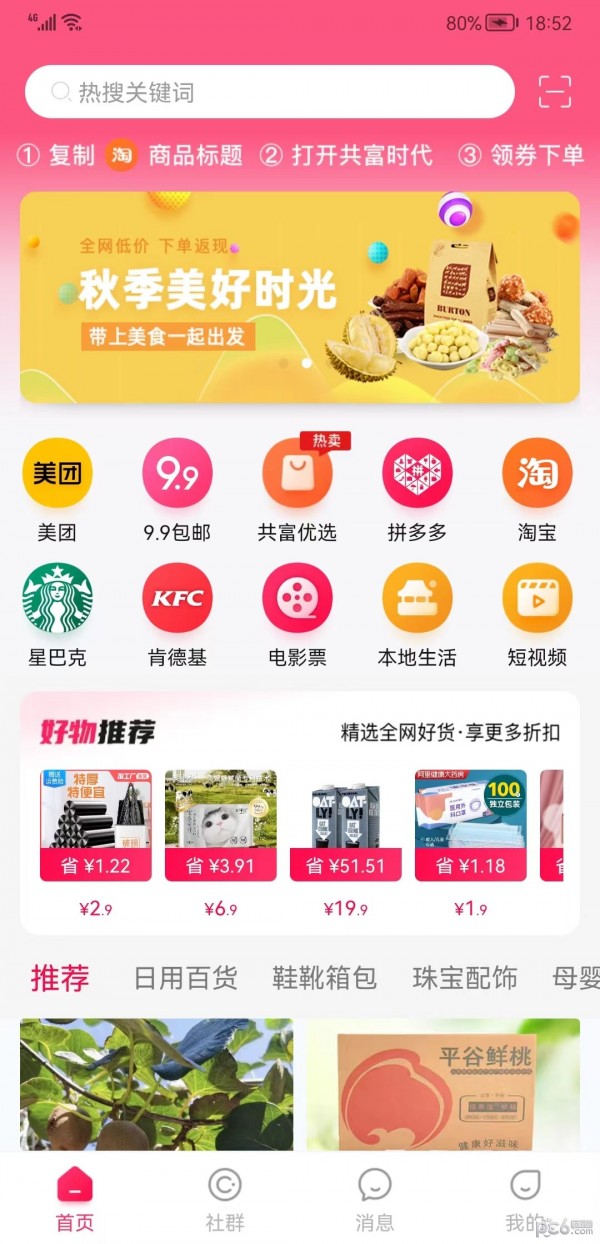 共富时代app是一个非常专业、高质量、简单可靠的一站式网上购物平台,允许用户轻松在线购物,满足更多用户的购物需求。在这里为用户选择各种优质商品,并在这里提供所有喜爱的商品,以满足个人和用户群体的购物需求,使购物变得越来越容易。所有商品都可以以超低质量的价格在线购买,以及快速配送服务,将商品快速交付给您。