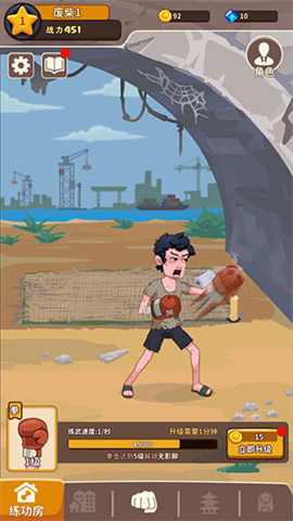 1、开游戏,点击底部的“拳头”图标即可开始战斗。