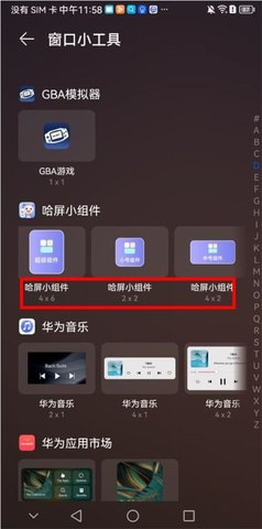 4、然后找到“哈屏小组件”,选择好尺寸,长按添加到桌面即可。