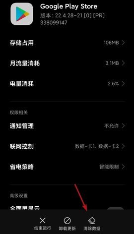 1、我们在应用管理中找到Play Store,然后点击清楚数据。