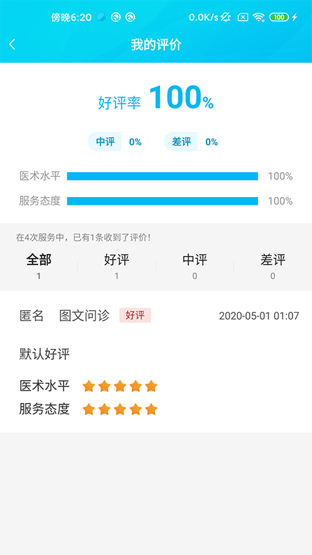 6、查看评价,您可以在线查看患者给出的评价,了解您的工作和业务水平;