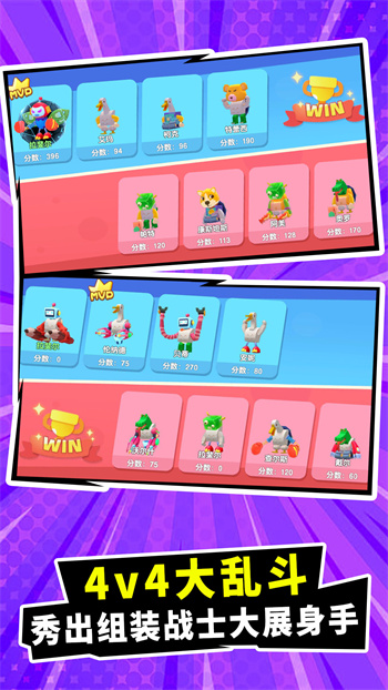 2、4V4乱斗:组建强大的队伍,与其他玩家展开激烈的战斗,体验真正的战斗乐趣。