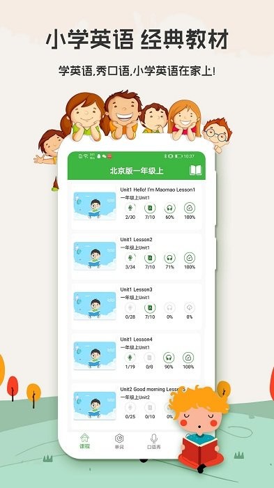 小学英语背单词最新版下载安装是一款学习英语的口语软件。该软件采用多种方法帮助学生学习英语。在软件中,可以训练人们影视剧、动画的英语,提高口语表达,掌握正确的发音。同时软件中还有各种有趣的课程,全面提高英语水平。