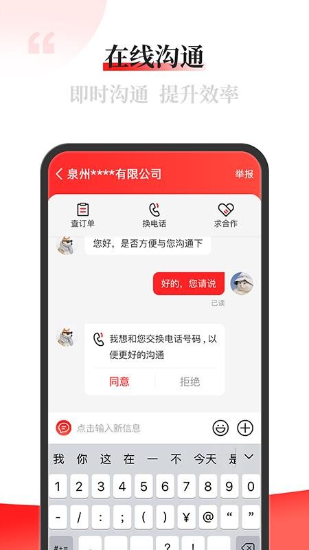 3、具有便捷的通讯页面,不仅提供两种通讯方式,还显示通讯的订单信息。
