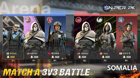 在3对3的比赛中与来自世界各地的玩家战斗,展示你的狙击射击技巧,赢得更多奖杯以获得里程碑奖励,并称霸排行榜!