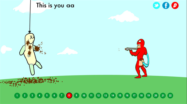 2、在安装的超人游戏中,玩家可以操作一个能吐出答案的超人,用各种充满激情的方式折磨稻草人。