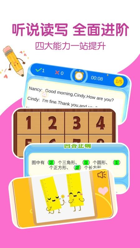 1、字母入门,词汇拓展,单词短句,经典的小学英语教材,全面掌握、培养小学英语阶段。