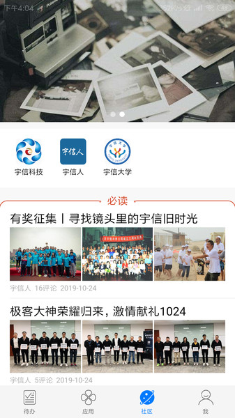 2、社区中心内容丰富,设有宇信科技、宇信人民、宇信大学多个专区