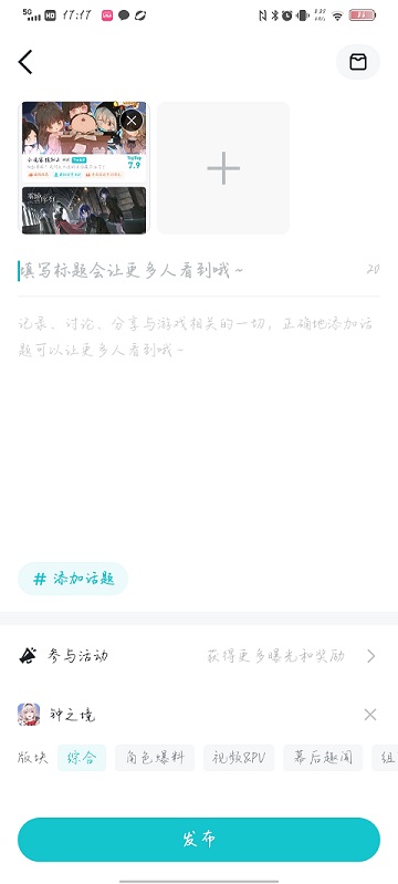 4、编辑标题还有动态内容,需要的话还可以添加话题标签,选择自己参与的活动;