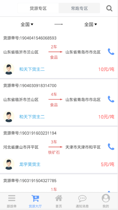 4、进入常跑区,就能找到符合自己运输路线的商品。