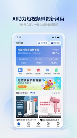 即创猫旨在帮助用户通过视频直播实现更高的销售业绩,随着电子商务与社交媒体的融合,视频直播逐渐成为网上销售的新方式,该应用程序为用户提供了全面的解决方案和创新的移动应用程序。该软件为用户提供无水印的视频和照片材料,使用户更容易完成视频剪辑,从而用户可以每秒更改编辑向导。