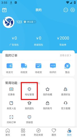 2、然后在“我的”界面点击“地址管理”。