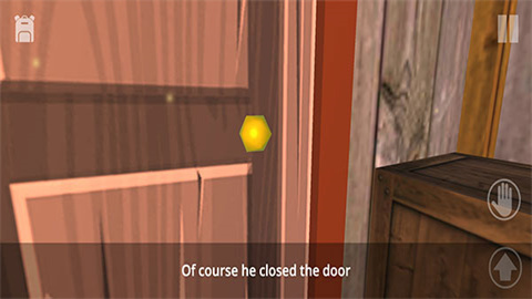 6、尝试移动到门口并点击手掌图标,试图打开门,却发现门紧闭。你必须寻找其他逃脱的方法。