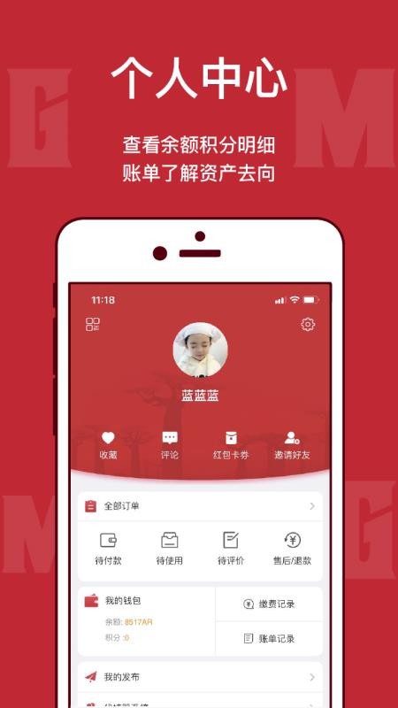5、个人中心:用户可以查看余额积分明细、账单,了解资产去向。