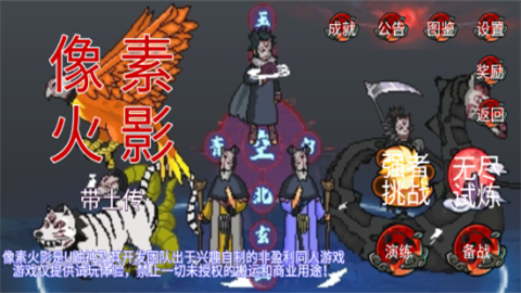 1、真实还原火影世界:精美的像素画风将火影各大场景和角色描绘得栩栩如生;