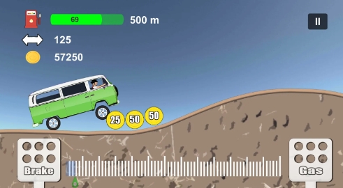 3、挑战独特的爬坡环境,获取奖品,收集硬币升级汽车,解锁新的关卡。