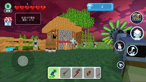 3、沙盒风格的画面呈现,玩家将面对各种动物和奇异怪物。