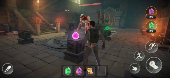 2、玩家需要根据地图提示,了解古墓的特性,将其划分为不同区域,深入地牢与怪物战斗,解开谜题。