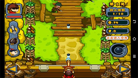2、游戏的核心是城防守护,玩家需要帮助主角阿虎通过9个不同的战役地形,每个关卡都有多波敌人。