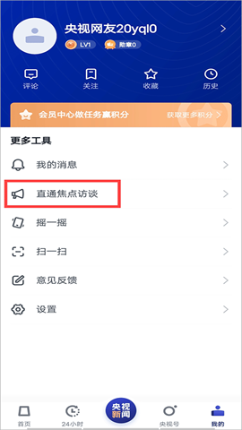 1、进入软件后,点击我的界面。在界面的“更多工具”部分下,您可以看到“直播焦点访谈”