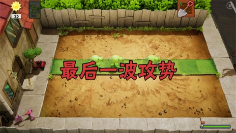 4、注意屏幕右下角的进度条,随着时间的推移,僵尸会发动最后一波进攻。一旦进度条满了,迅速消灭所有僵尸,通关就在眼前。