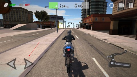 1、下载安装终极摩托车模拟器后,启动游戏,左侧的方向控制器用于控制摩托车行驶方向;
