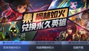 王者荣耀官方最新福利预告即枫林如火道具兑换活动将于9月13日正式开启,枫林如火是中秋节道具,那么王者荣耀枫林如火怎么得,有什么用呢,接下来小编给大家带来答案。 编辑:一言不发李某人时间:2018/09/12标签:来源:https://www.7230.com/分享+